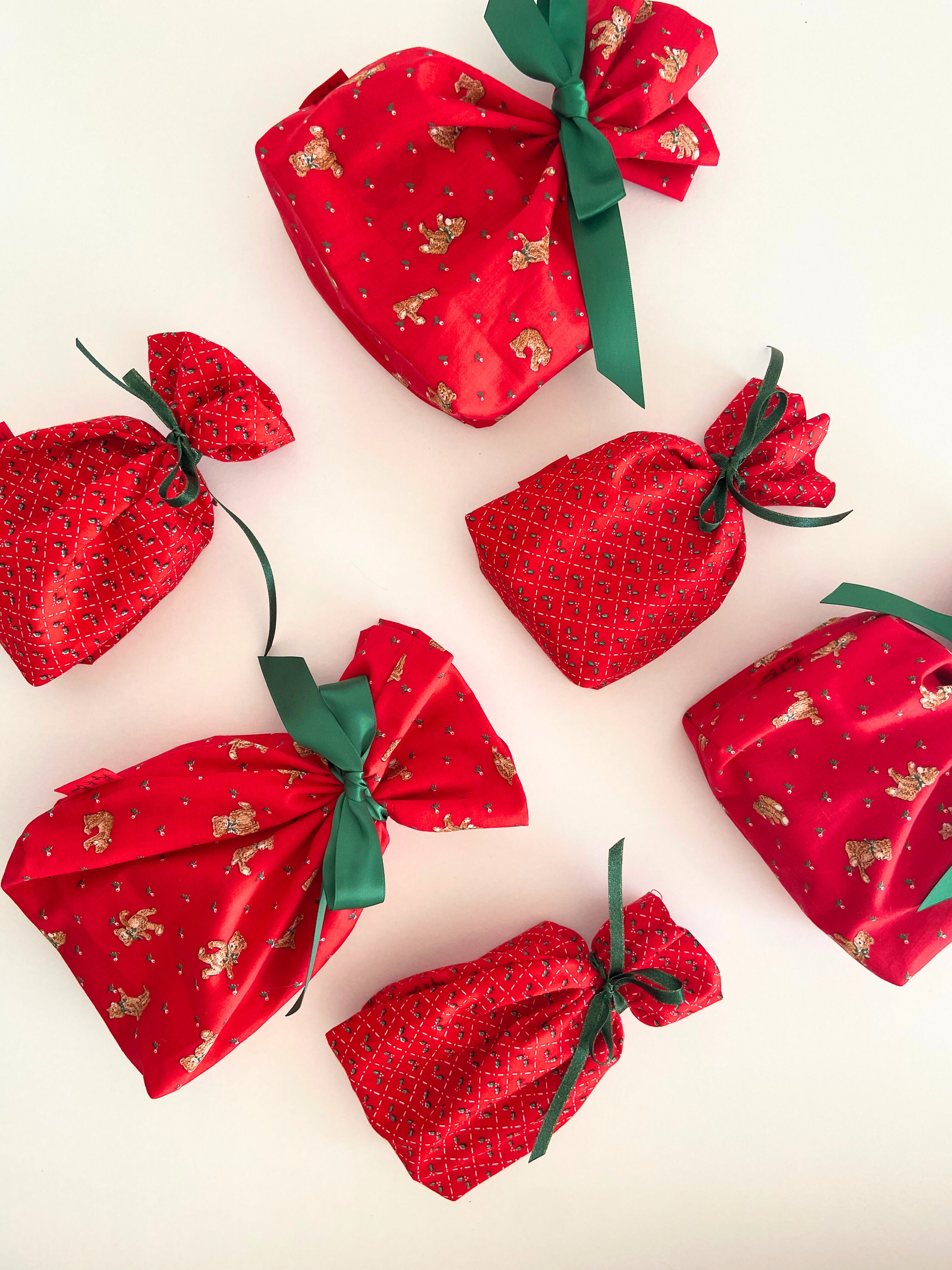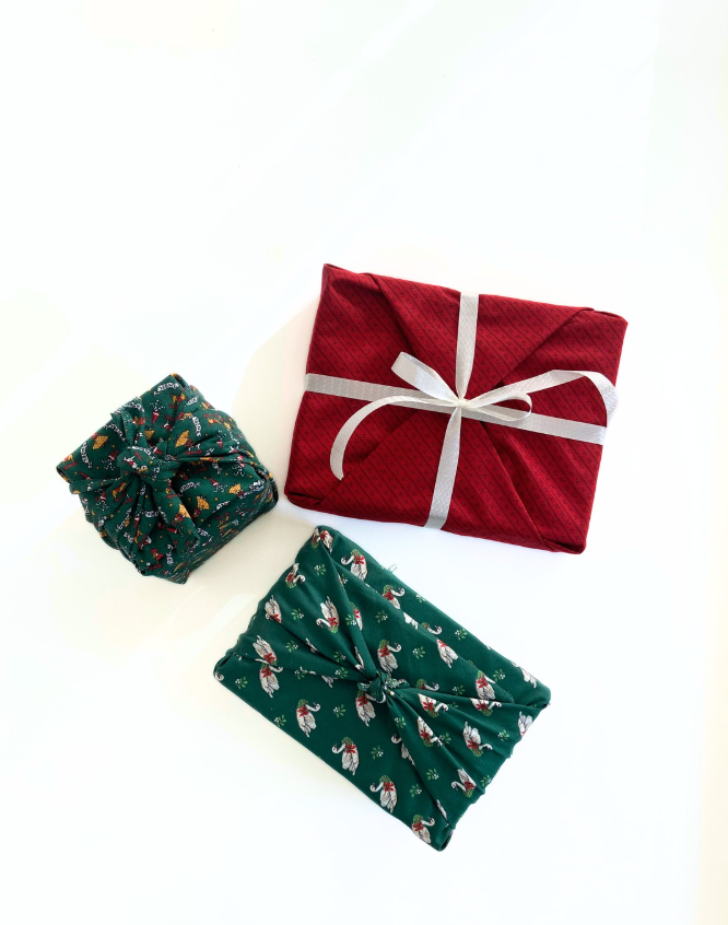 Resuable Single Layer Fabric Gift Wrap – Bright Red Green Plaid